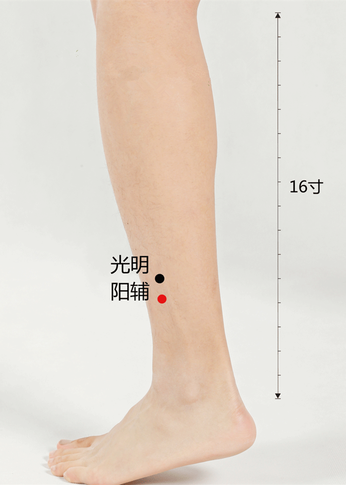 阳辅穴位于小腿外侧,在外踝尖上四寸的位置。