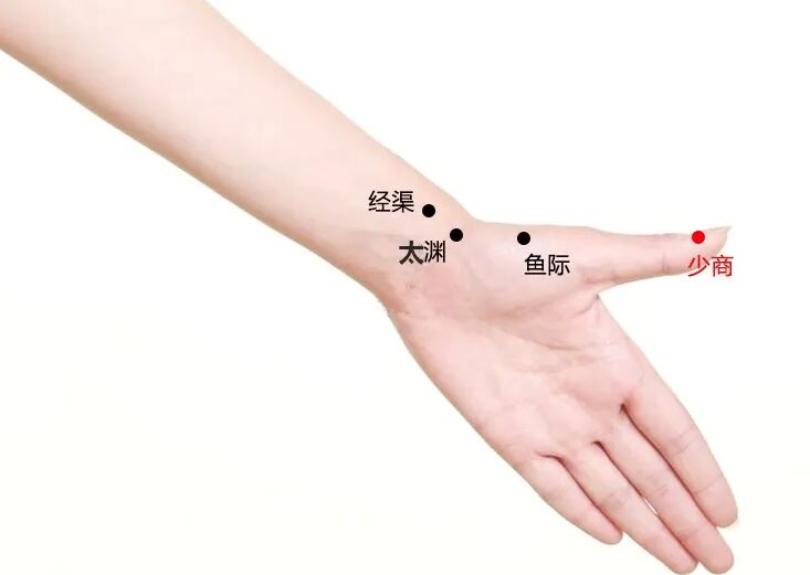 对于缓解咽喉肿痛,少商穴放血效果也很显著,如果不方便放血,可用另一只手的拇指指甲稍微用力切在穴位处,喉部会立即感到清爽,此法治标尚可,如若治本,还需视病情辨症施治。