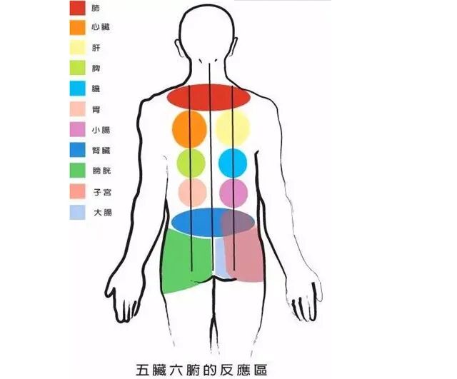 人的后背包含着许多脊椎神经,人体的五脏六腑均可在背部找到相应的对应区。