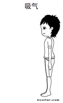 双腿站直并拢,弯腰下屈,用双手尽量向下伸展。保持伸展7~8秒,放松,重复这个动作10次。你会发现,手指和地面的距离在逐渐缩小。