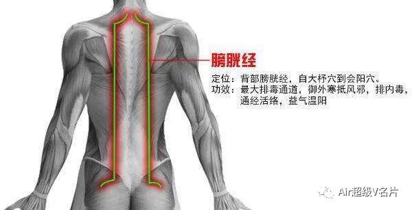 意思是膀胱经为足太阳经,它统领人体的阳气,为一身之表,外界的风寒首先侵袭膀胱经。平时我们老说「神仙也怕脑后风」、「冬暖脊背,夏暖肚」就是这个道理。