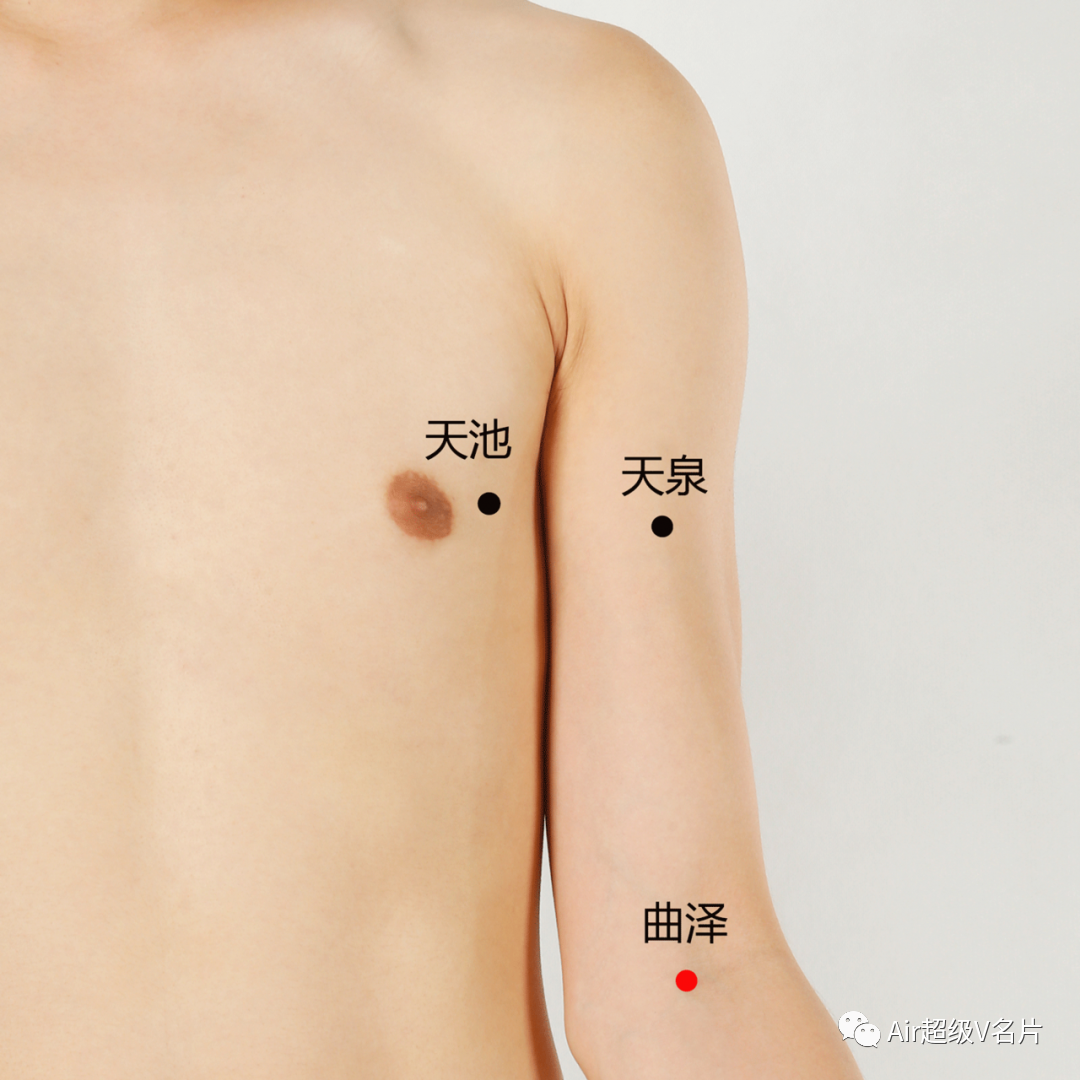 曲泽穴有降逆、阵惊、泻热、宁心的作用,对于中暑、平时心慌气短、心肌炎、急性肠胃炎、身热、心烦、呕吐等症状有预防和调理的作用。