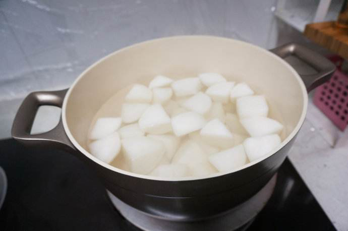 方法:用半个白萝卜切成片,放在锅内,然后加适量清水,先用武火熬3分钟,再用文火熬5分钟,随后倒入盆中。待适度降温后,取水每日3次反复洗患处,连续洗7天。