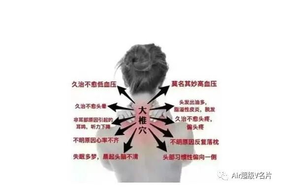 富贵包经常出现在大椎穴位置,它是我们人体的十字路口,有着承上启下的作用,大椎穴不通,会堵塞我们七条经络:督脉、膀胱经、大肠经、小肠经、三焦经、胆经、胃经。