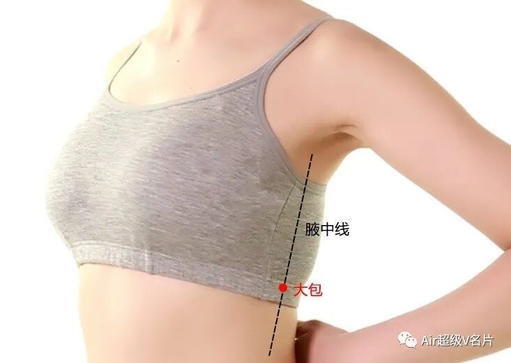 大包穴:是脾经的最后一个穴,在肋骨这块儿腋窝直下6寸处。“大包”就是大包大揽的意思,比如急性腰扭伤、急性脖子扭伤、急性肋间神经痛,这时候大包穴就可以派上用场了。