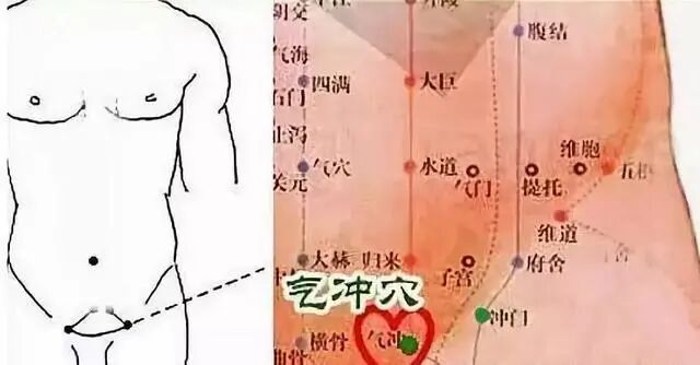 气冲穴在人体腹股沟处,大腿根儿内侧,具有改善月经不调、不孕、痛经、双脚冰凉的作用。