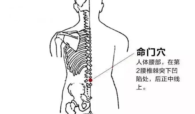 命门穴为五脏六腑之本,十二经之根,一般视为生命的门户,对肾气不足、精力衰退,有固本培元的功效。