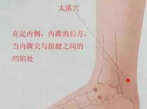 太溪穴是肾经的原穴,古人称太溪穴为“回阳九穴之一”,认为它具有很高的回阳救逆之功。