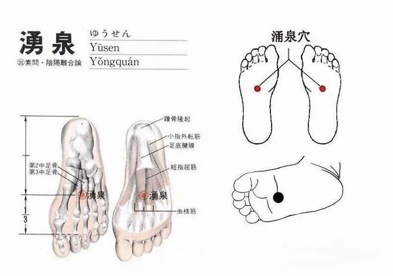 此穴是补肾固元的“长寿穴”。经常调理涌泉穴,可激发肾经的经气,疏通肾经的经络,调和肾脏的气血,调整和改善肾脏的功能和机能活动,使人肾精充足、耳聪目明、精力充沛。