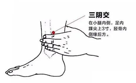 属足太阴脾经;在小腿内侧,内踝尖上3寸,胫骨内侧缘后际处。