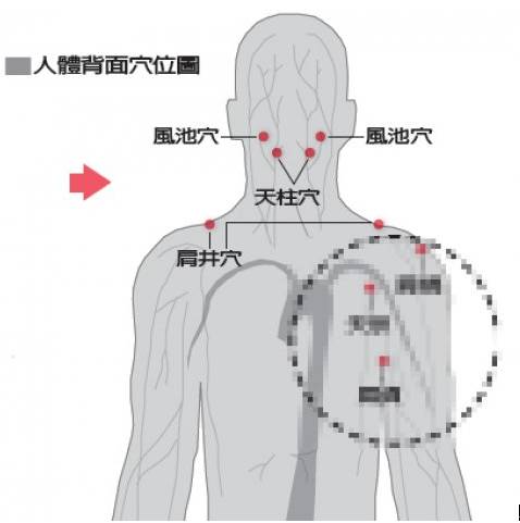 颈背部长时间保持一个姿势,导致肌肉组织紧张,造成头部肌肉活动限制,无法“左顾右盼”,易感昏沉、背部酸痛,肩井穴、风池穴和天柱穴这三个穴位都有帮助。