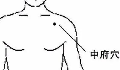 中府穴(两手叉腰,找到锁骨外侧端下缘的三角窝中心,然后垂直向下一肋骨即是)为肺经首穴。调理此穴能有效补充肺中阳气。