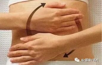 男左手在下,右手在上,双手心挨着肚脐,向下按着,顺时针揉。女右手在下,左手在上,逆时针按揉。