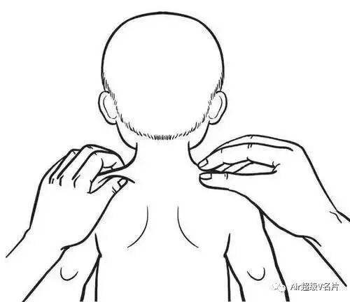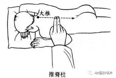 操作:用中指端揉,称揉大椎。在穴位上提捏,至皮下轻度瘀血,对百日咳有一定改善。