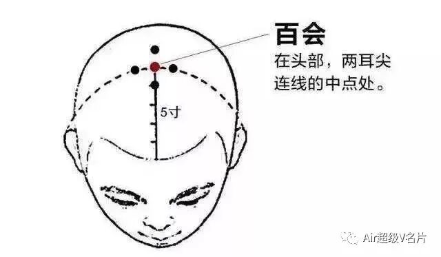 位置:百会穴很好找,在人的头顶上,两个耳朵尖连线的中点就是百会穴。