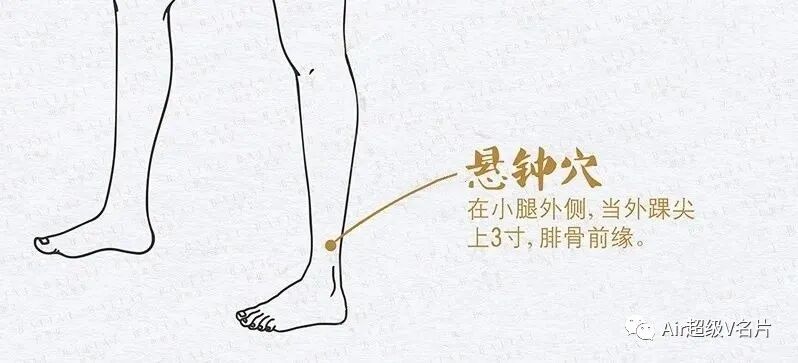 另外,颈肩僵硬、扭伤按摩悬钟有缓解。(左边痛按右脚的悬钟,右边痛按左脚的悬钟)