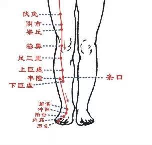 然后,在大腿的正面和外面1/2处接着敲,最后再敲一敲小腿中间胫骨的外侧。这些部位都包括了胃经的大穴。
