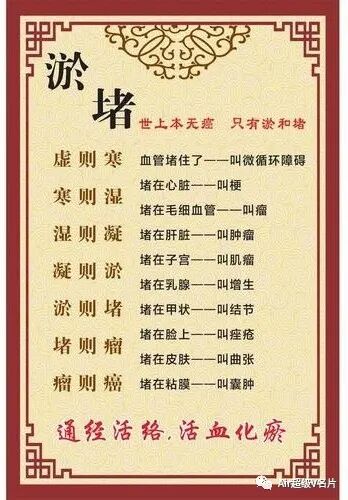 前人云:“癌瘤者,非阴阳正气所结,乃五脏瘀血浊气痰滞而成。”体内存在着气滞、血瘀、痰凝、湿聚等一系列瘀堵,使脏腑功能失调,气血不和,浊邪积聚,进而所变生的一种强烈致病物质,渐渐积累就会变成癌。