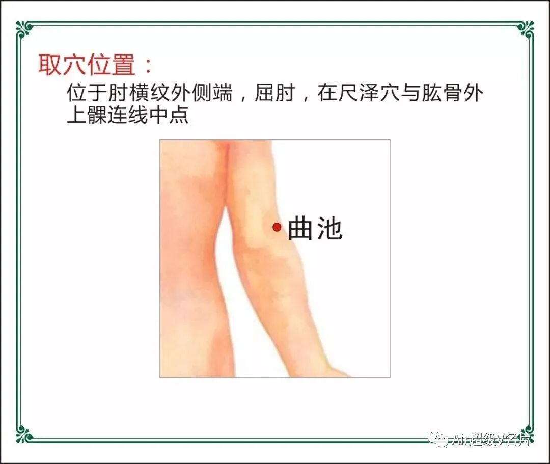 还有一个简单而有效的小方法可以作为日常调理来使用,那就是对手肘部的曲池穴每天做做按摩,用拇指或者是中指指端来按揉,每次1~3分钟,每日按摩1~2次。