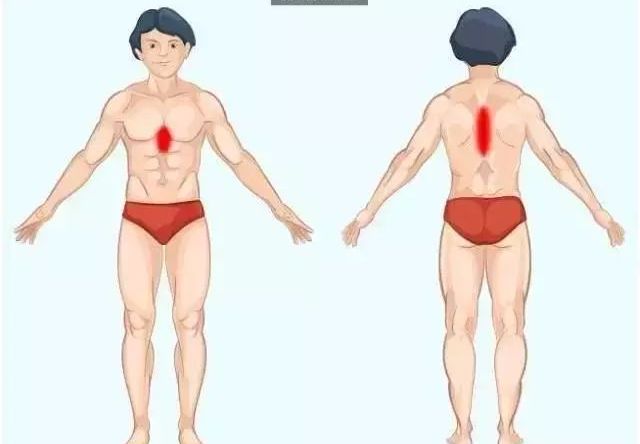胃出现问题,中腹部会疼痛,背部同一位置也会疼痛。胃、食道引发的疼痛经常与心脏引发的疼痛混淆,最好去看医生。