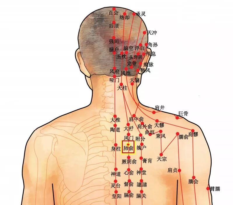 肺俞穴有解表宣肺,清热理气,调肺和营,补劳清热的作用。主调理肺、胸、背等问题:如咳嗽上气、胸满喘逆、头项强痛、自汗盗汗、肺痿痨瘵、骨蒸潮热、吐血唾血、腰脊疼痛、喉痹、眩晕、黄疸、呕吐、癫狂、瘈疭、瘿气、疠风。现代又多用肺俞穴调理改善支气管炎、支气管哮喘、肺炎、肺结核、咯血、胸膜炎、皮肤瘙痒症、胸背神经痛、背部软组织劳损等