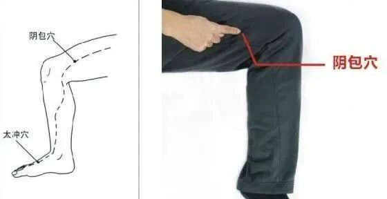 我们可以去探查肝经上的易堵塞穴位,大腿内侧的阴包穴。