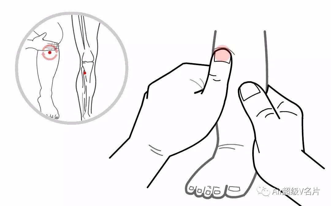 位置:足三里位于两小腿外侧,膝眼下三横指胫骨外,用拇指指端按揉3-5分钟,改善小儿消化系统功能旺盛,消化吸收率增加,面黄肌瘦。