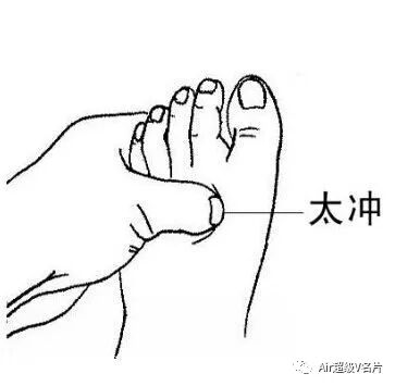 用法:用拇指按揉太冲穴3~5分钟,感觉轻微酸胀即可。不要用太大的力气,两只手交替按压。