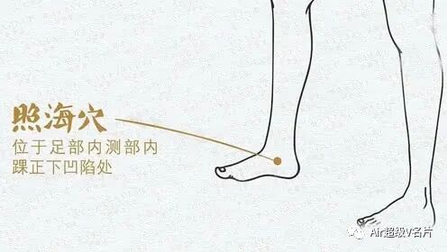 用法:每次指尖掐照海穴3~5分钟,每天不限制时间、次数。按摁住足部的照海穴,并闭着嘴,不要说话。一会儿,会感觉嘴里有津液,慢慢吞咽下去,这样几次后,可缓解不适。
