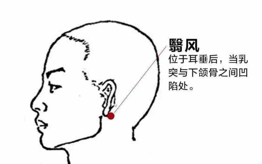 翳风,翳,指华盖,也就以前皇帝出行的时候,头顶上遮挡的那一个屏风或者盖子,有遮挡的意思。这个穴位位于耳垂后方,也符合这个遮挡的意思。
