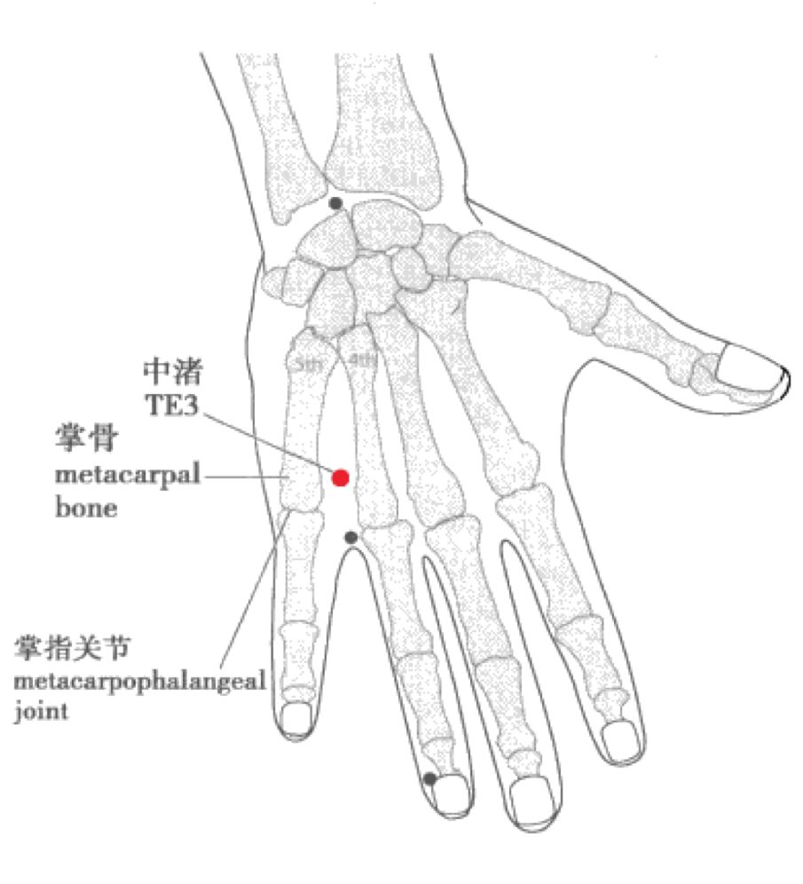 中渚穴是调理诸多痛症的要穴。痛证的含义非常广,比如肩膀痛、腰后面脊椎痛、膝盖痛、肩周炎、头痛、耳痛、牙痛、胃痛,中渚穴统统都管。