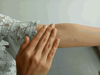 1、左手伸直,心朝上,右手拍左手上手肘20下,再拍下手肘20下。