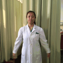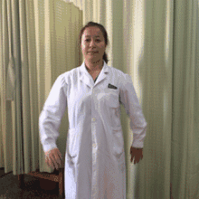 左手放在背后,右手手臂放在胸前,手掌立起向左平行推出,同时头部向右看,保持几秒钟
