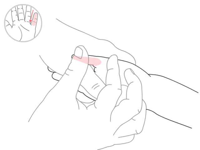 操作:在孩子食指末节螺纹面做向心性直推