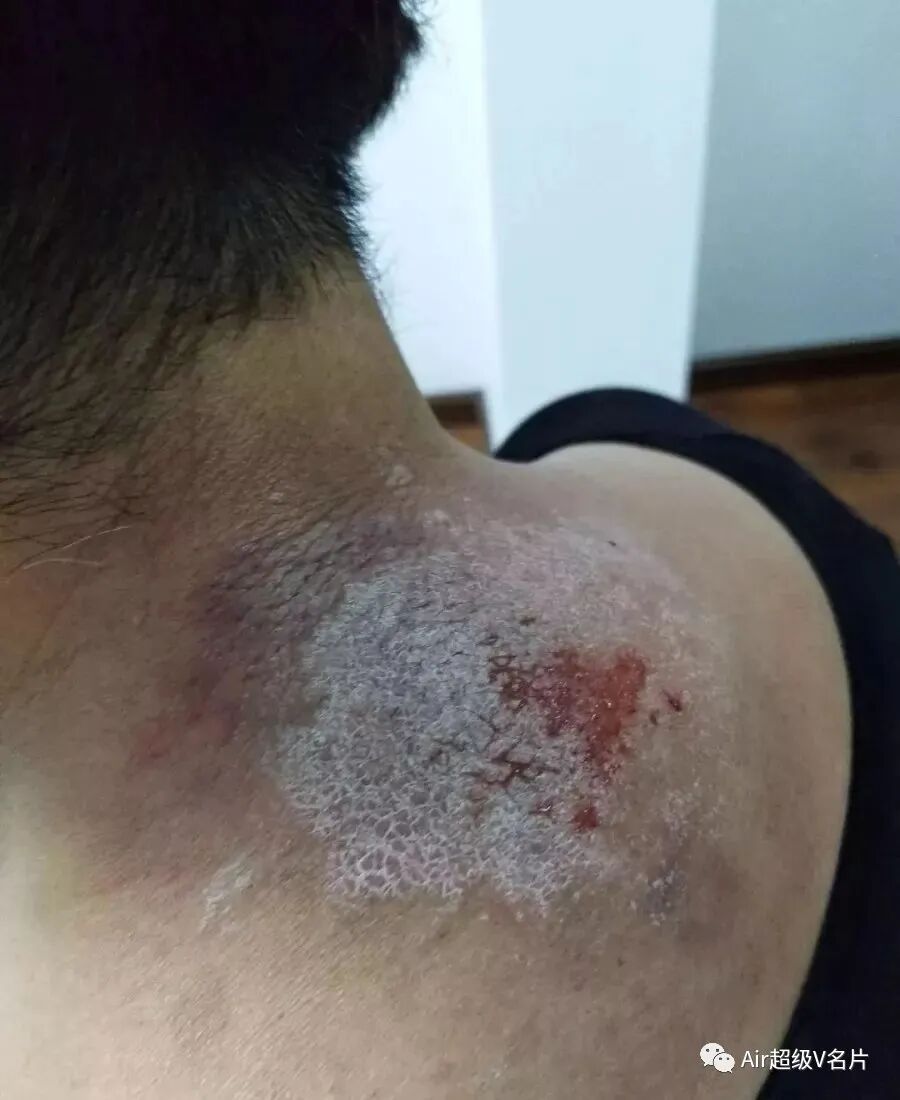 14)【出血】:这也是属于身体的问题比较重,湿毒大,血液毒素多,皮肤容易溃破,出来的血带乌黑色,这种情况常见于拍牛皮癣,银痟病等,会拍的血肉模糊,但是能彻底自愈。