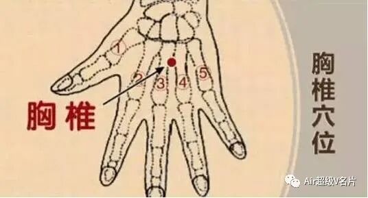 人体运动系统的主要手诊位置在手背上,只有一小部分在手掌中表现。脊柱的手诊部位是自手背中指根部到腕部的连线,中间2/4为胸椎。
