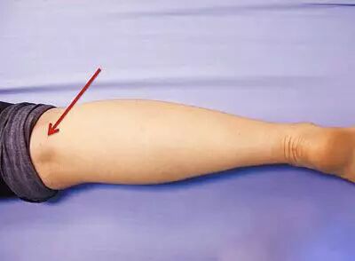 我们看一个健康的小孩,或者是腰很正常的人,你让他趴下来的时候,摸他那个委中的部位,会发现它是凹陷的,这是正常状态。