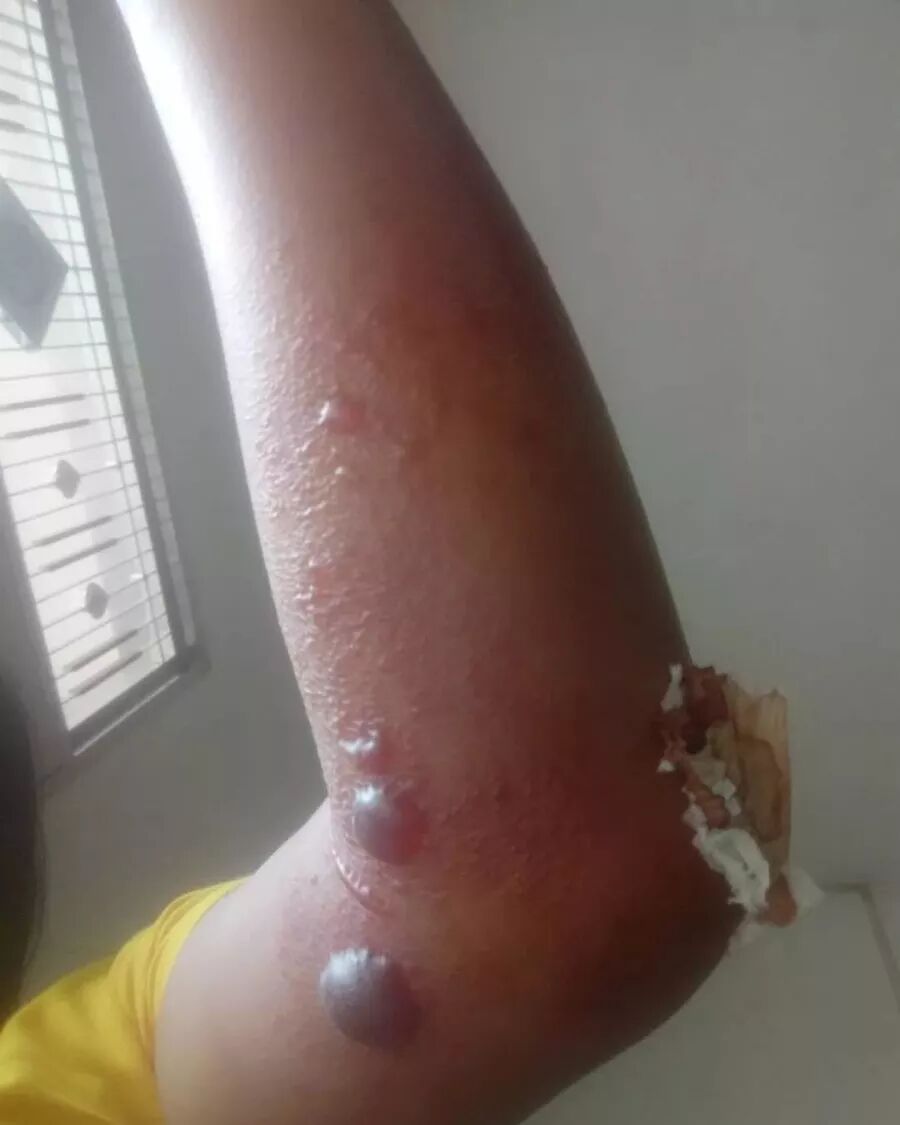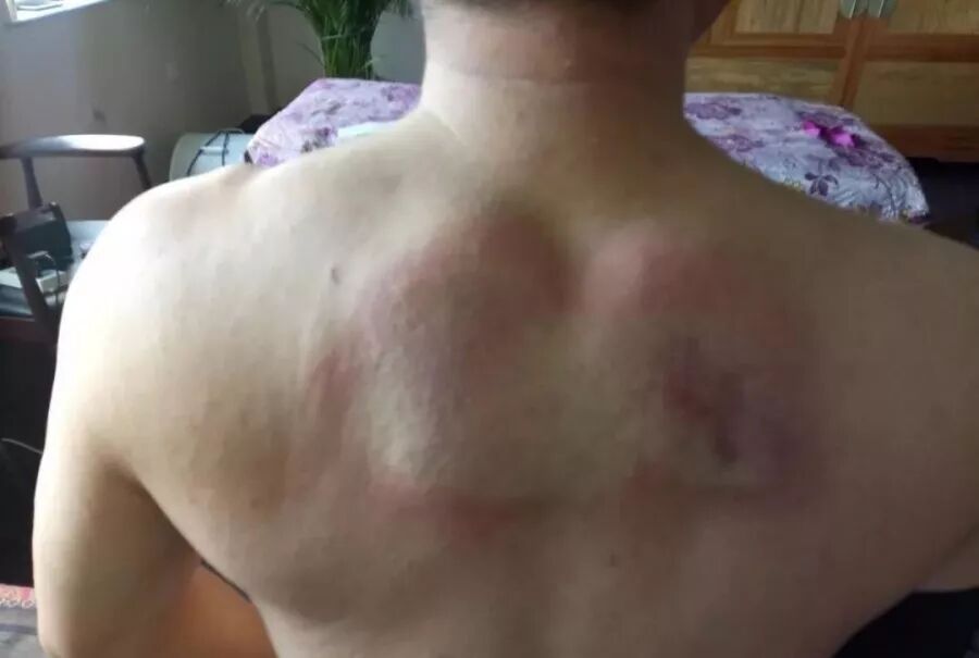 5)【水泡】:一是身体湿气太重,皮肤是最大的排毒通道,这种体质不管是刮痧拔罐拍打艾炙都容易出水泡;二是各种皮肤病,痒症,急性过敏时一拍就容易出密密麻麻的黄水泡。