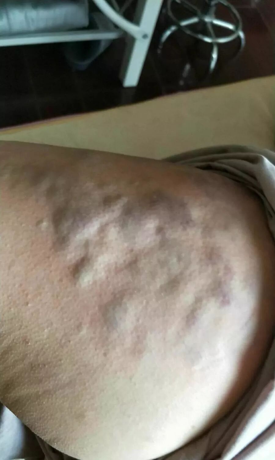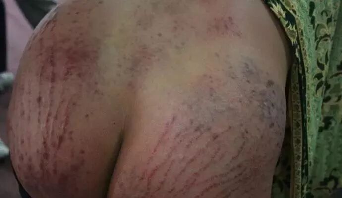 11)【线状痧】:这种痧一般常见于身体肉多脂肪肥厚,容易长妊娠纹和肥胖纹的地方,比如臀部,肚子,大腿等,拍打时会顺着一条条纹路出痧,多次拍打出痧后纹路会慢慢淡化。