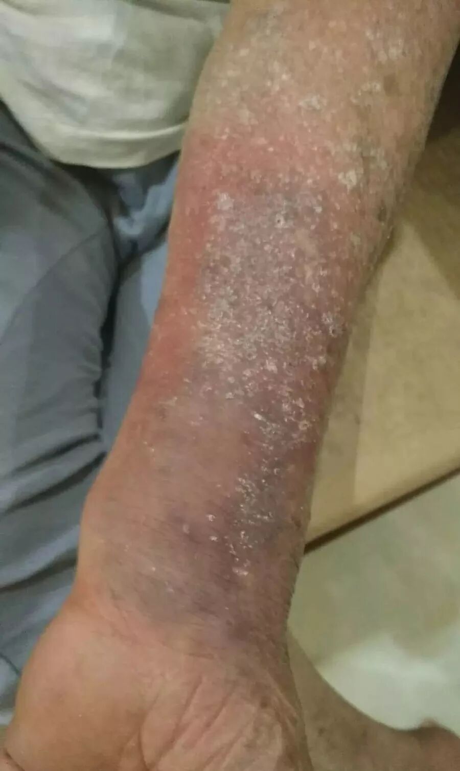 13)【裂口】:这种拍出硬皮,直接裂口的常见于手脚有各种皮炎的,并且擦各种激素膏药较多的,比如神经性皮炎,接触性皮炎等,擦的激素药膏沉积在皮肤深层,拍打后会通过指端末梢代谢出来。