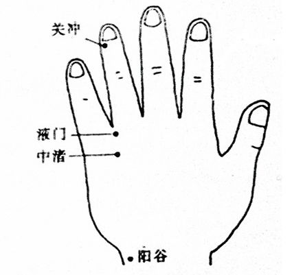 「荥主身热」,液门擅长治疗津液亏少之症如口干舌燥、眼涩无泪。如果眼睛总是干涩,可以多揉液门。如果口干,咽唾沫都没有,也可以揉液门。除此之外,还能解头面烘热,头痛目赤,齿龈肿痛,暴怒引发的耳聋等证。