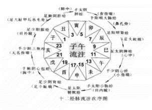 中医将一天分成十二个时辰,并用十二地支代表子午流注学说。子午流注学说是中医学的主要组成部分,是研究人体气血运行的时刻表。
