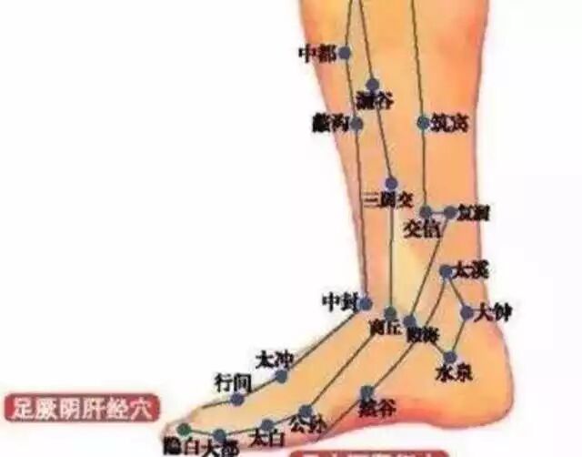主治疾病:治疗疝气的特效穴位。《玉龙歌》“七般疝气取大敦。”《胜玉歌》“炙罢大敦除疝气。”疏肝理气的作用最强,善治因气郁不舒引起的妇科诸症,如闭经、痛经、崩漏,更年期综合症。同时也是治疗男子阳痿、尿频、尿失禁的要穴。用指甲轻掐此穴还有通便之效。同时,此穴还是治疗肝脏慢性病必不可少的治疗和保健要穴。