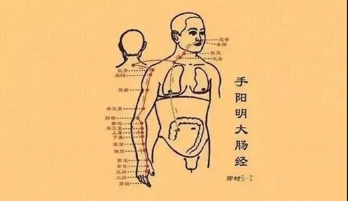 另外,大肠经通畅不只是解决便秘这点儿事,它还能有效地让大肠发挥其功能,加强排毒养颜的功效。当大肠及时排出体内堆积的废物之后,你的皮肤会白里透红。