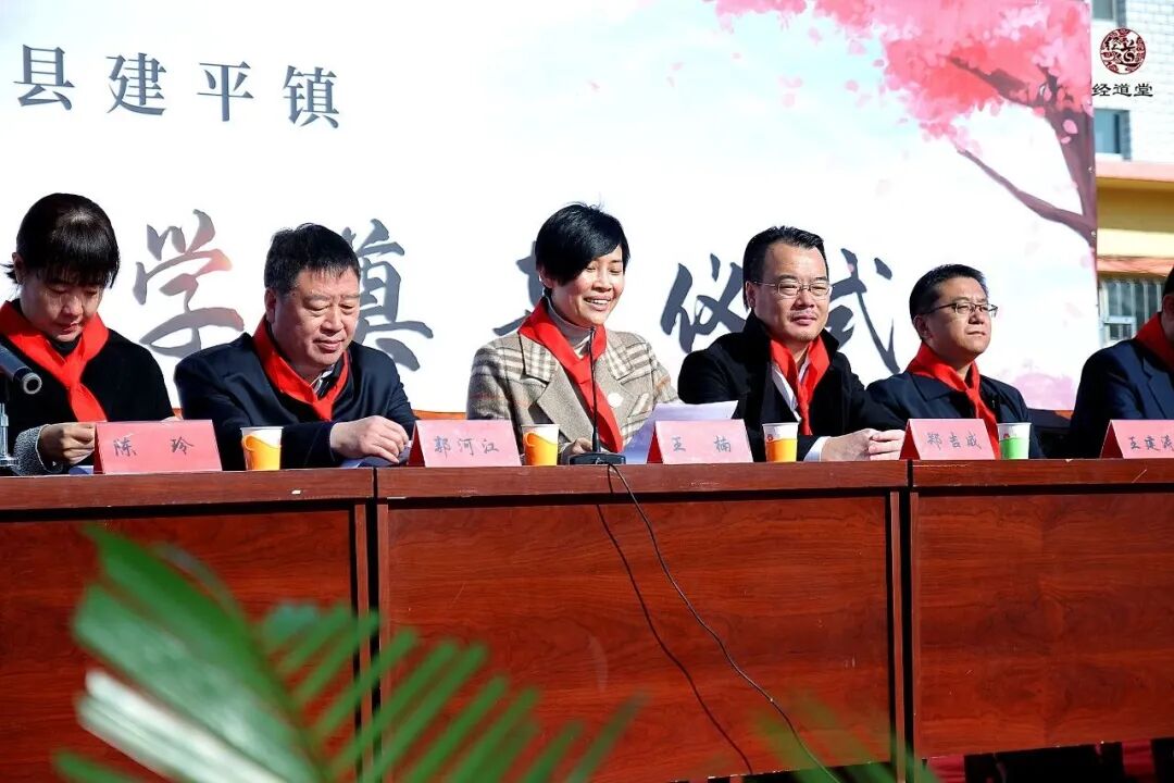 大连长兴岛经济区经道堂职业培训学校有限公司总裁王楠、经道堂国学院院长郑吉威在辽宁省青少年发展基金会秘书长陈玲、朝阳市团委青发部部长刘诗阳、朝阳市建平县委副书记郭河江、建平镇希望小学校长王云辉等陪同下,参加了此次奠基仪式。
