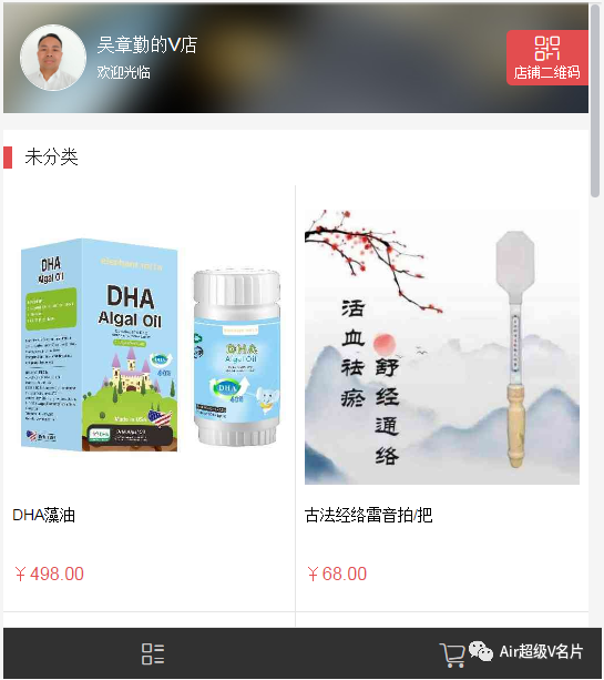 4.V店:可以上传自家的商品,无需任何费用,等于说是拥有了一个个人网店,上传进去的每一款产品都可以独立生产一张二维码,可分享,传播,制作商品推广海报等等。