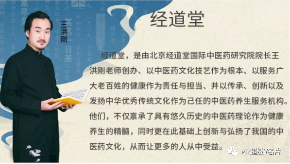 是由北京经道堂国际中医药研究院院长王洪刚老师创办、以中医药文化技艺作为根本、以服务广大老百姓的健康作为责任与担当、并以传承、创新以及发扬中华优秀传统文化作为己任的中医药养生服务机构。他们,不仅禀承了具有悠久历史的中医药理论作为健康养生的精髓,同时更在此基础.上创新与弘扬了我国的中医药文化,从而让更多的人从中受益。