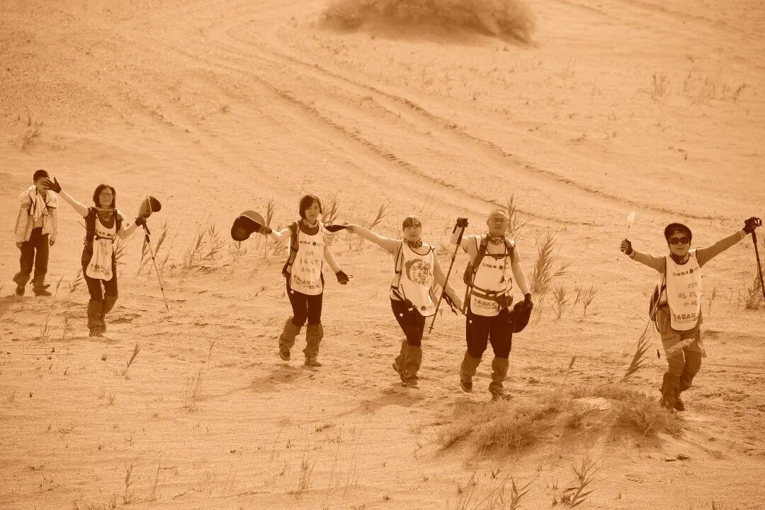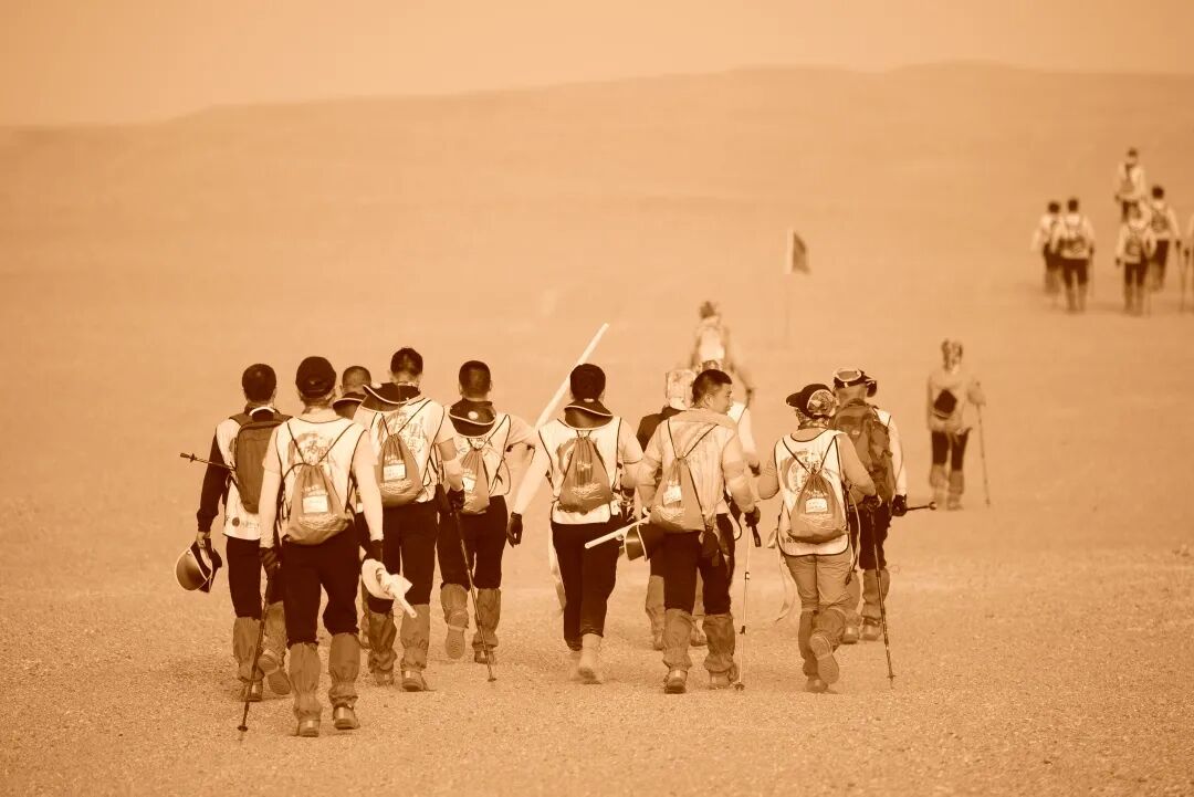 相互陪伴,相互超越。我们好像形成了一种默契,彼此惺惺相惜,又互相憋着一股气。空旷戈壁,如果没有你,会是多么寂寞,身前身后空无一人,有多无助。每次看到前方你的身影,我的斗志就会被再一次激起,鼓起勇气,继续出发。