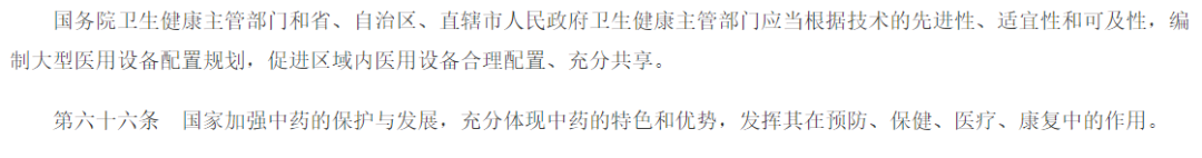 此次实施的“健康法”,在第 3 条中明确指出医疗卫生事业是社会公益事业,发展医疗卫生事业要以人民为中心,“坚持以基层为重点,以改革创新为动力,预防为主,中西医并重,将健康融入所有政策,全民共建共享”方针。这表明了国家对于公民健康日常养护的重视及通过日常养护、保持健康以及预防“未病”的重大意义。 而在接下来的第 66 条中,更是突出了要“加强中药的保护与发展,充分体现中药的特色和优势,发挥其在预防、保健、医疗、康复中的作用”。