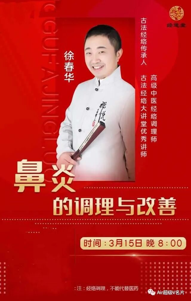 【古法经络今晚公益课堂】鼻炎的调理与改善!